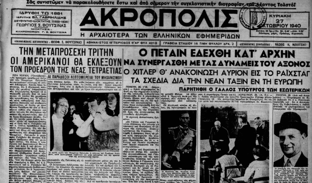 Ξεφυλλίζοντας το εσωτερικό των ελληνικών εφημερίδων της 27ης Οκτωβρίου, κανείς δεν θα πίστευε πως μια μέρα μετά η Ελλάδα θα μπει σε πόλεμο. Είναι λες και δε συμβαίνει σχεδόν τίποτα.