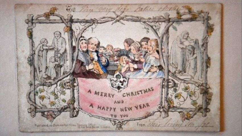 Η πρώτη εμπορική χριστουγεννιάτικη κάρτα στον κόσμο σχεδιάστηκε το 1843 από τον John Callcott Horsley, και την ιδεα ειχε ο Henry Cole (ιδρυτής αργοτερα του Victoria and Albert Museum) ο οποίος και παρήγγειλε και τον σχεδιασμό της.