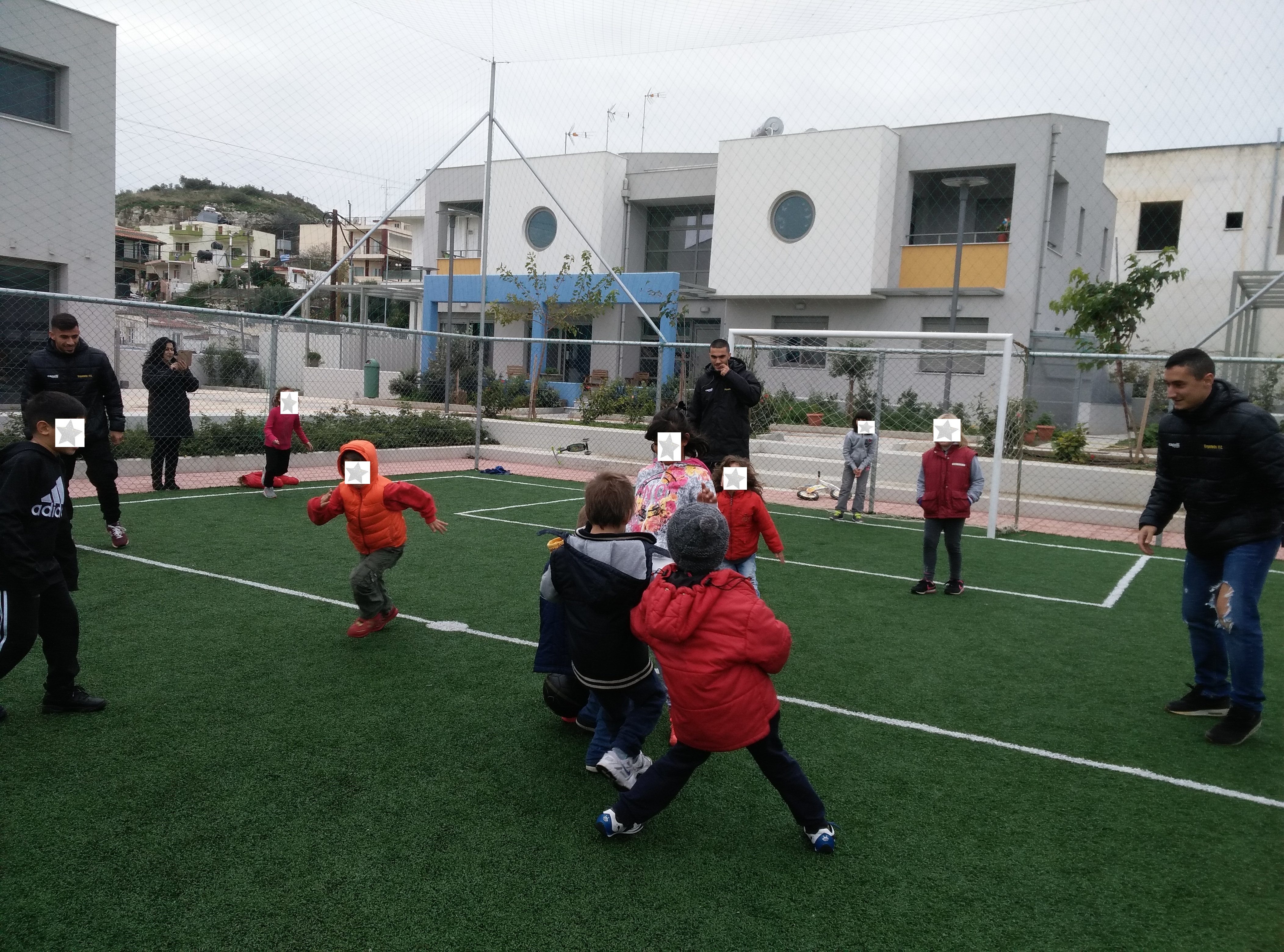 Οι ποδοσφαιριστές της ομάδος Μανόλης Ροβίθης, Γιάννης Μπουτσάκης, Βασίλης Βογιατζής, Κώστας Χατζηδίμπας και Ορέστης Κατσούρι μοίρασαν δώρα στα παιδιά και άδραξαν της ευκαιρίας να παίξουν ποδόσφαιρο και να συνομιλήσουν μαζί τους χαρίζοντας τους πολλές αγκαλιές και χαμόγελα.