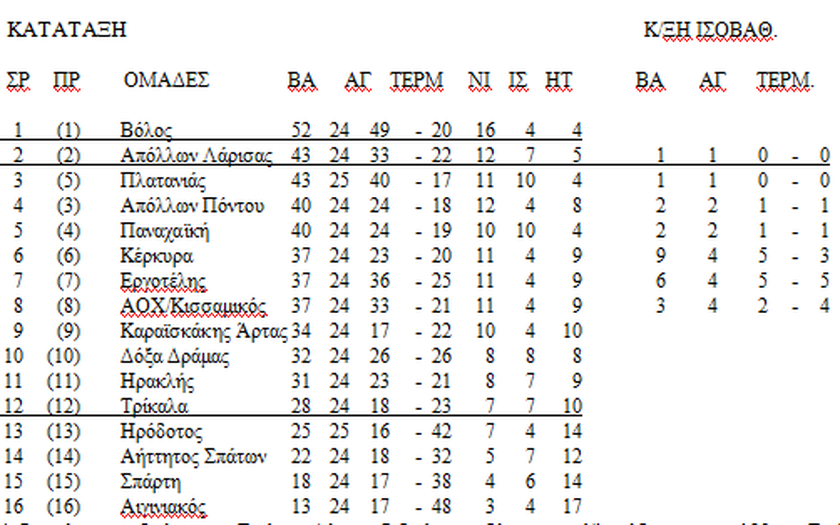 15:00 ΑΟΧ Κισσαμικός - Απόλλων Λάρισας
