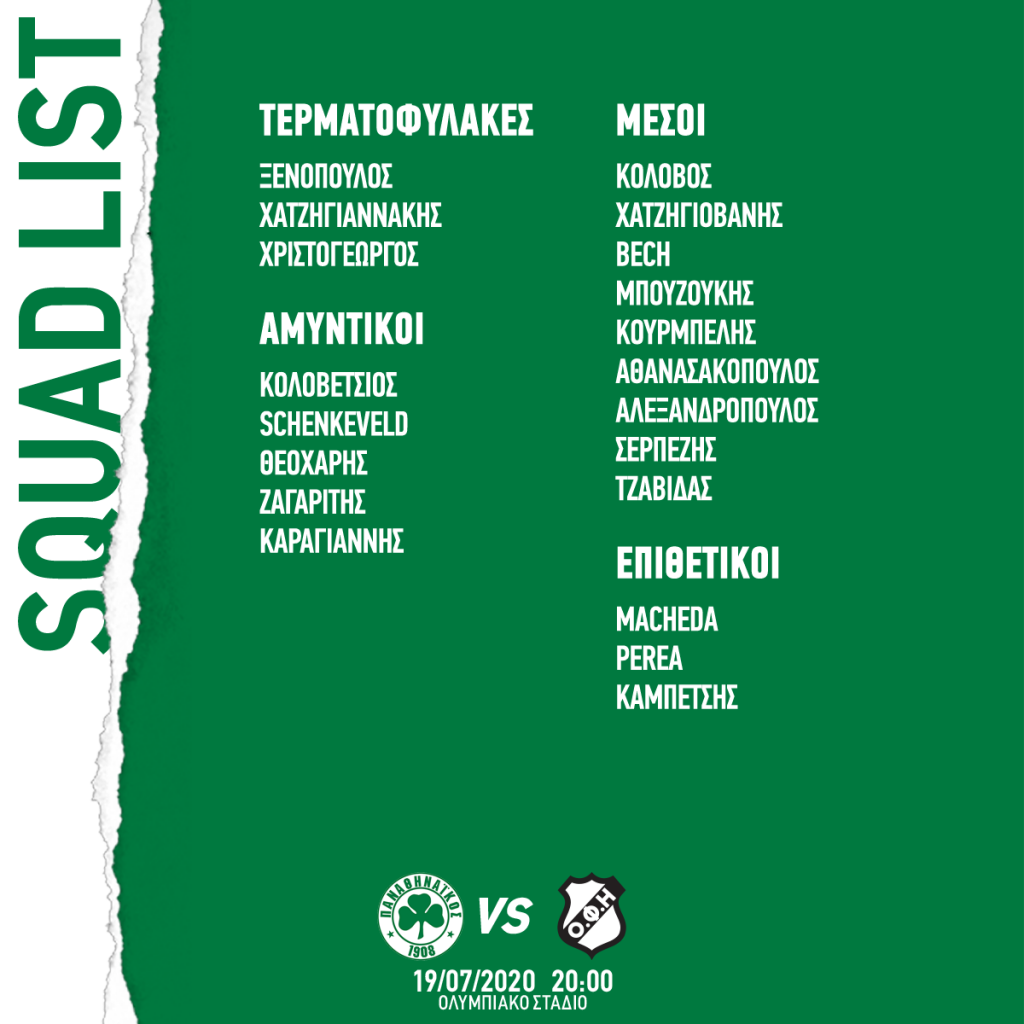 Η προετοιμασία του Παναθηναϊκού για το παιχνίδι με τον ΟΦΗ (19/7, 20:00) ολοκληρώθηκε και ο Γιώργος Δώνης ανακοίνωσε τα ονόματα των ποδοσφαιριστών που συμπεριλήφθηκαν στην αποστολή των "πράσινων".