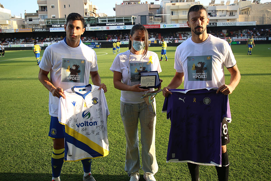 Οι ποδοσφαιριστές των δύο ομάδων και οι διαιτητές εισήλθαν στον αγωνιστικό χώρο φορώντας T-shirt με το χρυσό κορδελάκι και το μήνυμα «Οι δικοί μας ήρωες», ενώ το σύμβολο κατά του παιδικού καρκίνου, φορά όλο το προσωπικό των ομάδων που εργάζεται στο γήπεδο.