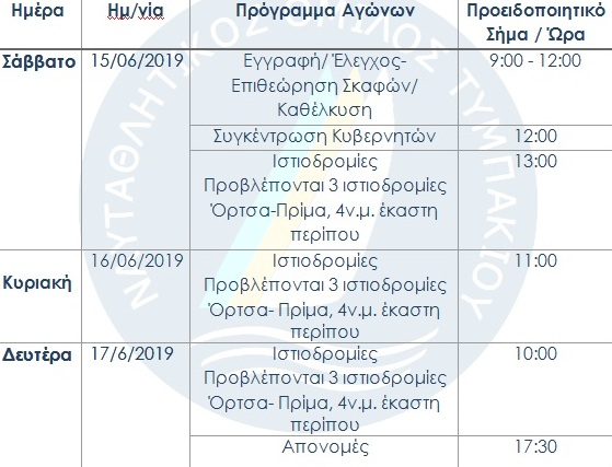 Από νωρίς το πρωί του Σαββάτου θα ξεκινήσει η προετοιμασία των σκαφών, ενώ η διοργάνωση θα «κλείσει» το απόγευμα της Δευτέρας με τις απονομές.