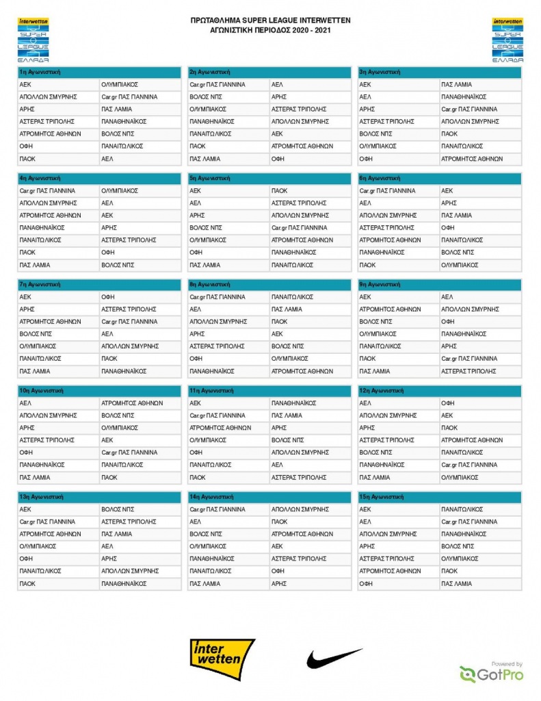 Ανακοινώθηκε το πρόγραμμα της Super League 1 .Αναλυτικά το πρόγραμμα όλης της νέας αγωνιστικής περιόδου.
