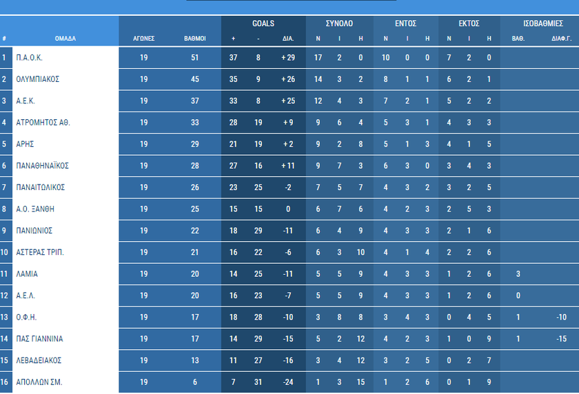Στους 17 βαθμούς βρίσκεται, πλέον και ο ΠΑΣ Γιάννινα, ο οποίος ηττήθηκε από τον Αρη, ο Λεβαδειακός έχει 13 και είναι 15ος και ο Απόλλων πάντα τελευταίας με μόλις 6 βαθμούς.