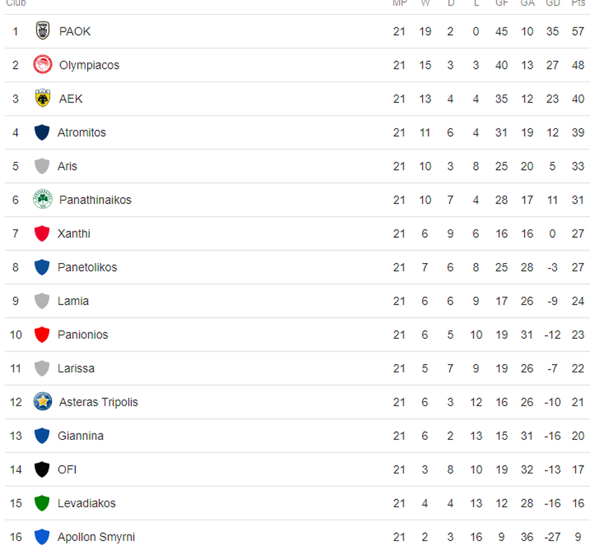 Δείτε τα αποτελέσματα και την βαθμολογία της 21ης αγωνιστικής της Super League.