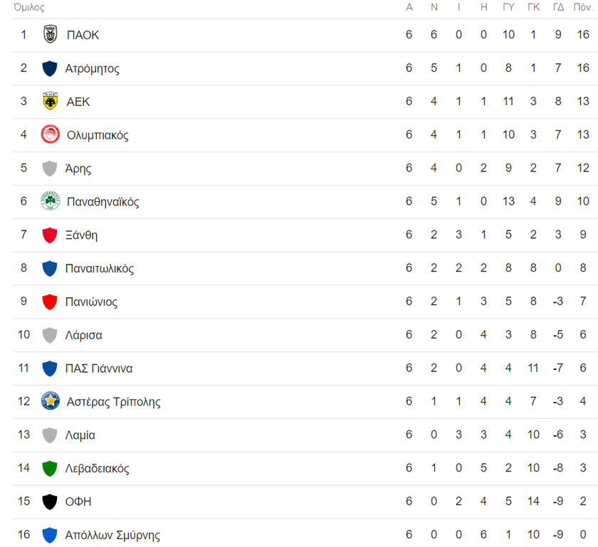 Super League: Τα αποτελέσματα και η βαθμολογία της 6ης αγωνιστικής και το πρόγραμμα της επόμενη