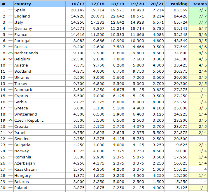 Δείτε πώς διαμορφώθηκε η κατάταξη της UEFA