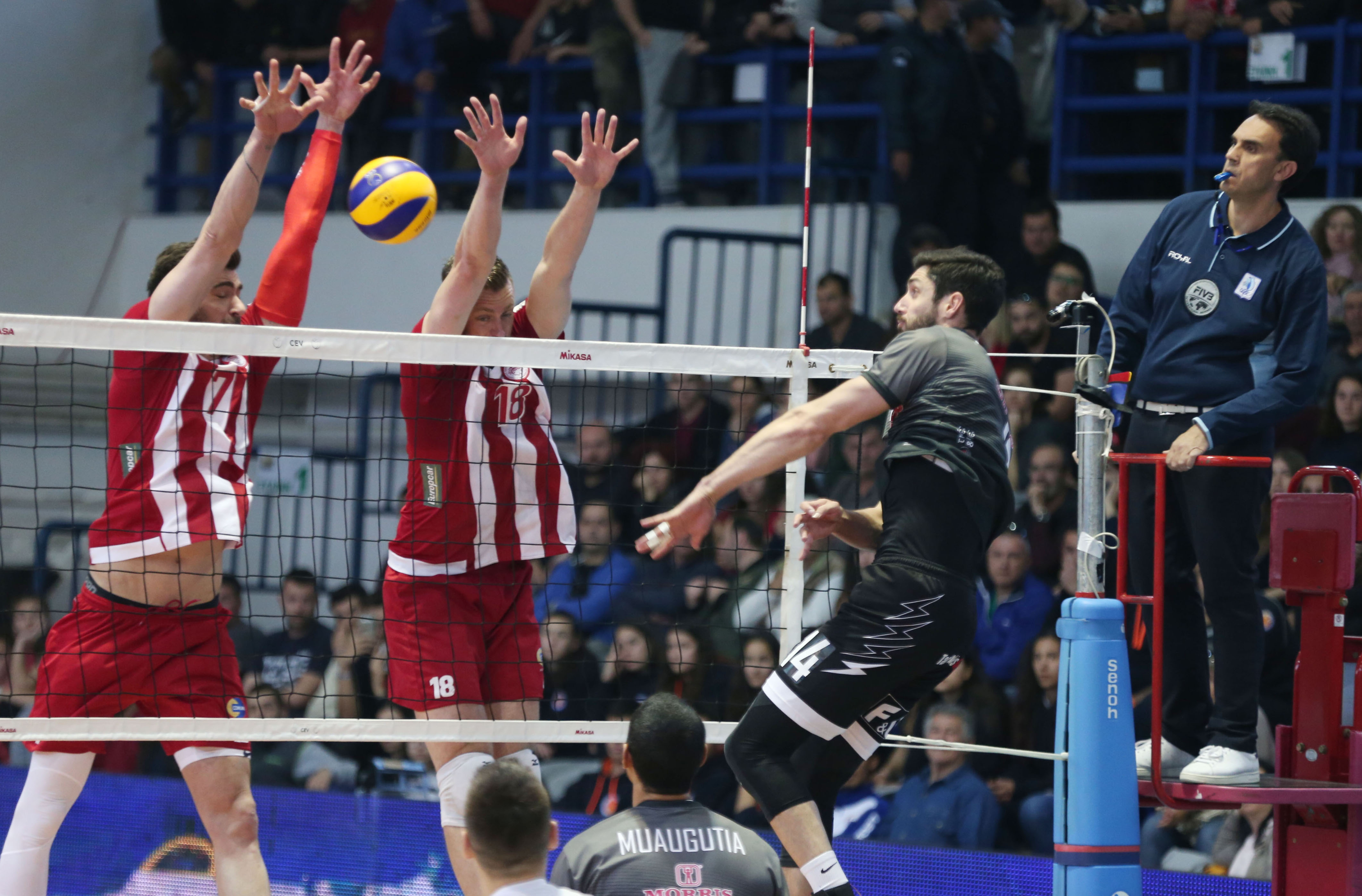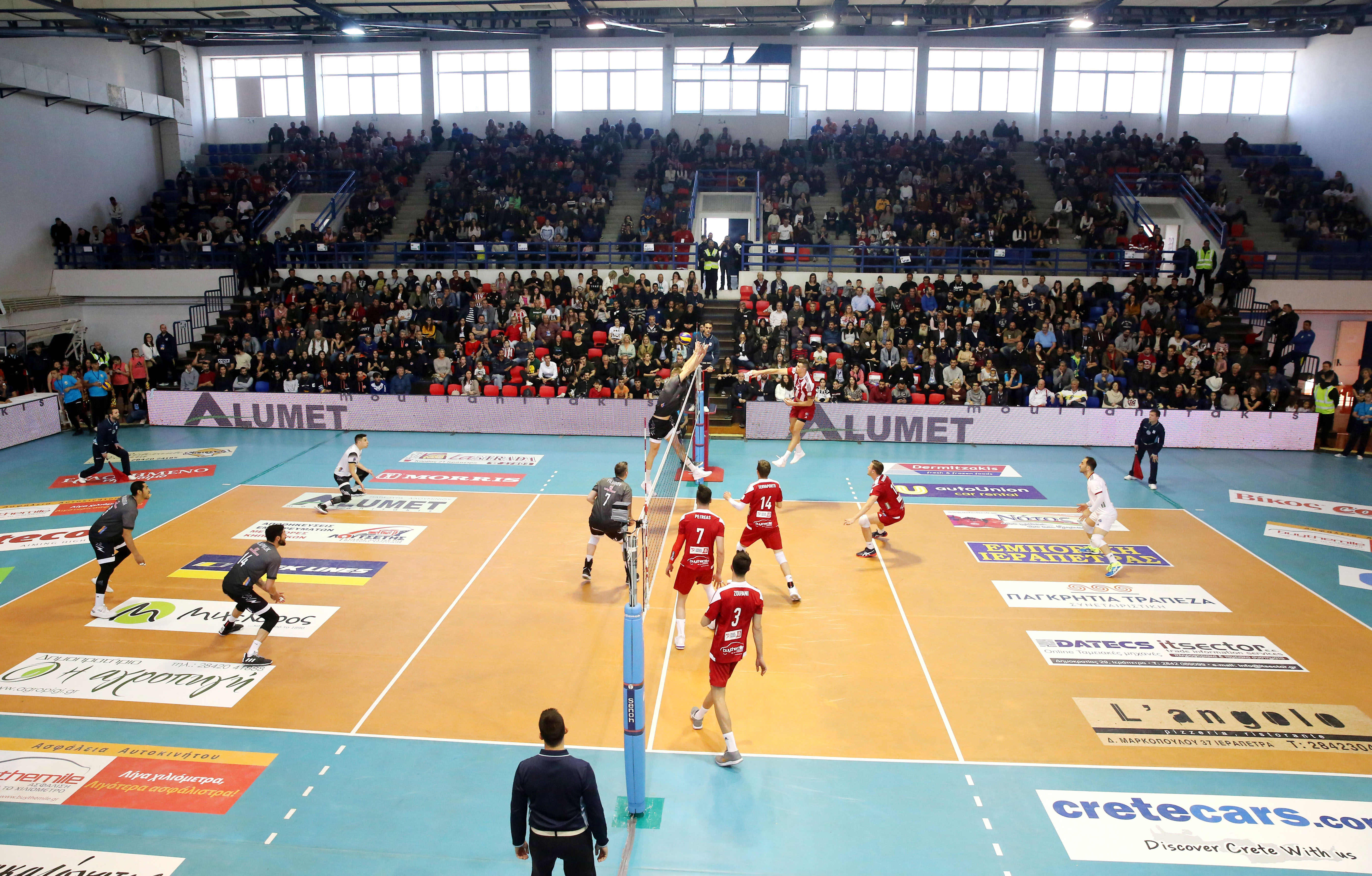 Όπως και πέρυσι, οι δύο καλύτερες ομάδες της χώρας, τέθηκαν αντιμέτωπες πρόωρα, με τον Δικέφαλο του Βορρά να παίρνει μεγάλη νίκη κόντρα στους Πειραιώτες οι οποίοι φανερά επηρεασμένοι από τις απουσίες των Τόντορ Αλεξίεφ και Ραφαέλ Κουμεντάκη, και με κάκιστο δεύτερο σετ, δεν κατάφεραν παρότι αντιστάθηκαν μέχρι τέλους, να κάμψουν την αντίσταση των επιβλητικών Ασπρόμαυρων!