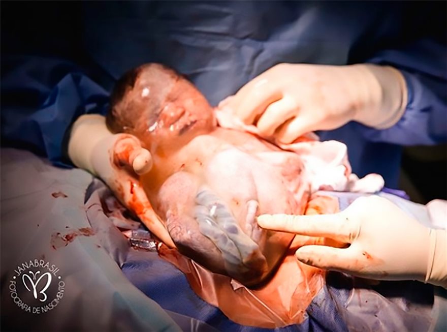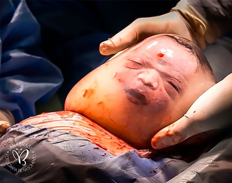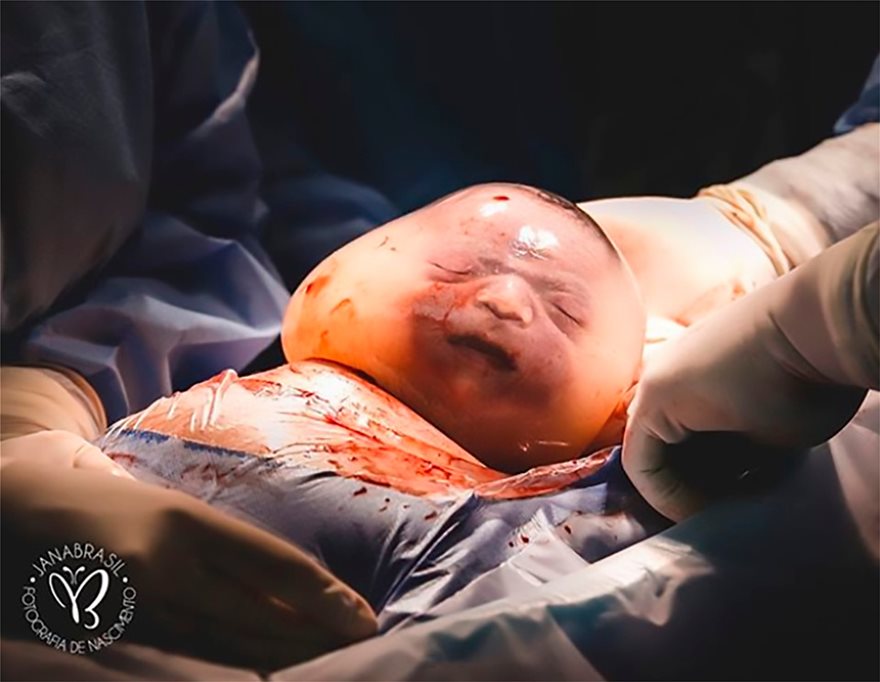 Η φωτογράφος Jana Brasil «αιχμαλώτισε» τη στιγμή της γέννησης, με τη μοναδική εικόνα του μωρού μέσα στον αμνιακό σάκο.