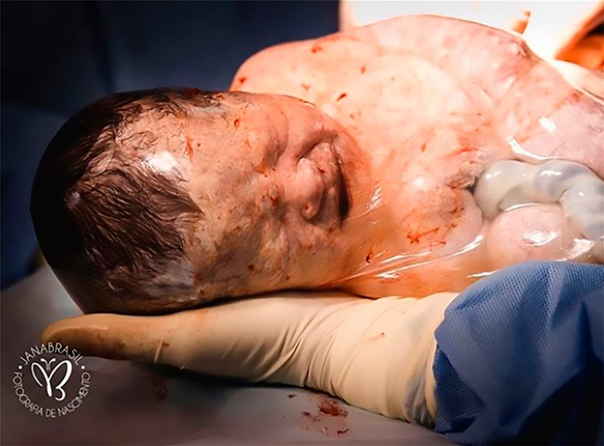 Για πρώτη φορά, ωστόσο, φωτογραφίζεται και η εικόνα κάνει τον γύρο του κόσμου. Ο μικρός Noah Valasco βγήκε από την κοιλιά της μητέρας της μέσα στον αμνιακό σάκο, γεγονός που έγινε δεκτό σχεδόν με ενθουσιασμό από το ιατρικό τιμ, όντας εξαιρετικά σπάνιο, όσο και ακίνδυνο για την υγεία του μωρού και της γυναίκας.