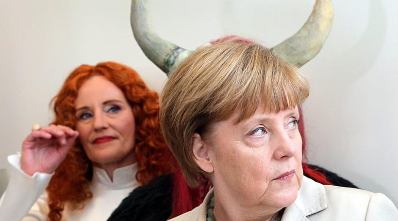 Είναι να σε κυνηγάει και η ατυχία αλλά και ο παπαράτσι. Η Γερμανίδα καγκελάριος "έδωσε" πάλι άθελά της τροφή στα socila media που από το πρωί έχουν οργιάσει με την νέα εκπληκτική της φωτογραφία. Πήγε χθες σε μία παράσταση γερμανικού θιάσου κι ενώ στεκόταν στο φουαγιέ κάποιοι ηθοποιοί της ζήτησαν μία φωτογραφία μαζί τους. Την ώρα των μετακινήσεων όμως για να πάρουν όλοι θέσης απέναντι στον φακό πίσω από την γερμανίδα καγκελάριο στάθηκε ένας ηθοποιός που ... φορούσε κέρατα για τις ανάγκες του ρόλου του. Και το στιγμιότυπο που προέκυψε .. τα λέει όλα. Απολαύστε το