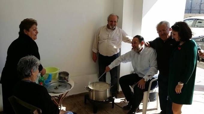 Η Τσικνοπέμπτη έχει ... χώρο για ελευθερίες που τις άλλες μέρες δεν συνηθίζουμε εύκολα. Έτσι κι ο Δήμαρχος άφησε τη Λότζια και το συνήθως βαρύ του πρόγραμμα κι είπε να χαλαρώσει λιγάκι. Έλα όμως που επισκεπτόμενος το ΚΑΠΗ (τον βλέπετε με το .. δέον καπελάκι) οι θαμώνες τον έβαλαν να ... μαγειρέψει. Κι ο Δήμαρχος χατήρια δεν χαλάει. Το πιστοποιεί κι η φωτογραφία άλλωστε.