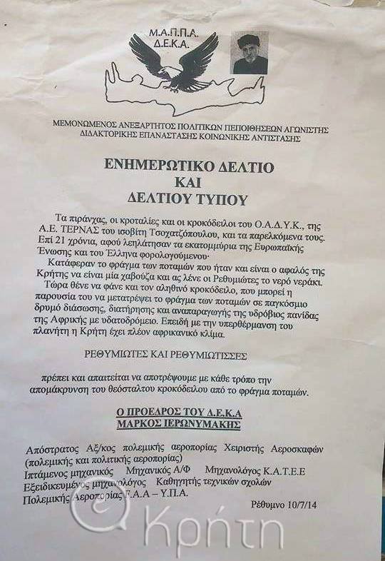 Το χαρτί το πέτυχε ρεπόρτερ του ekriti καρφιτσωμένο σε περίπτερο του Ρεθύμνου. Και τι δε λέει ...