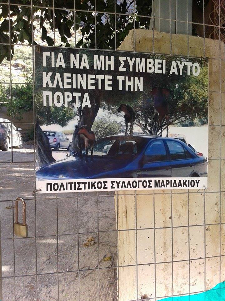 Μία έξυπνη αφίσα κυκλοφορεί ο Πολιτιστικός Σύλλογος στο Μαριδάκι για να πείσει κάθε επισκέπτη να μην ξεχνά το λουκέτο στη συγκεκριμένη πόρτα.