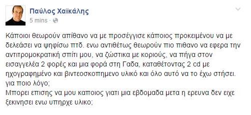 Την αγανάκτησή του στα social media για τα συμβαίνοντα με τις καταγγελίες του εξέφρασε το απόγευμα του Σαββάτου ο Παύλος Χαϊκάλης γράφοντας στο twitter: