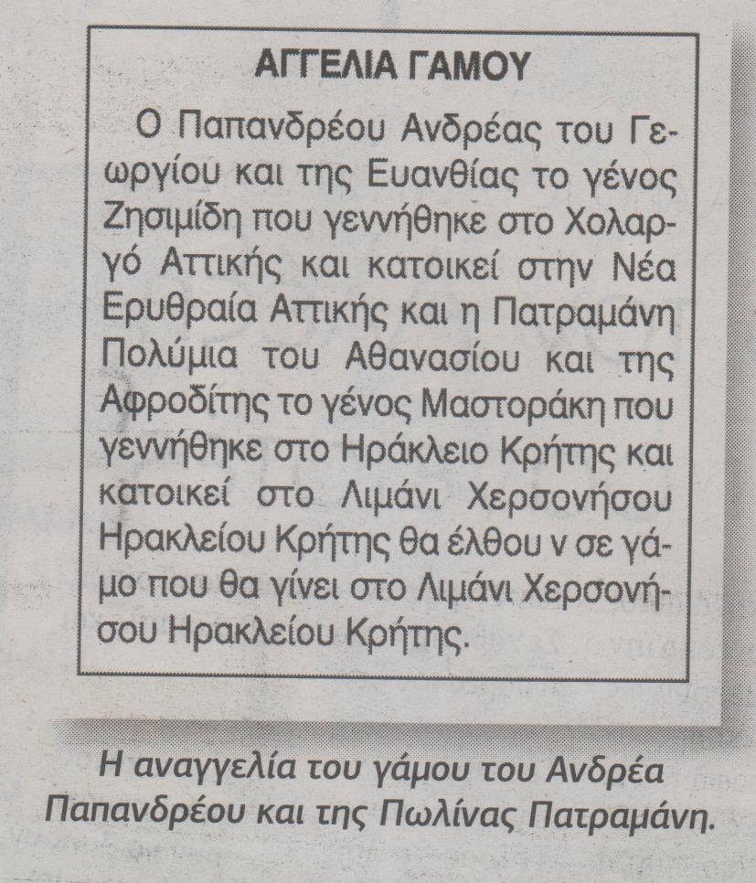 Σε πλήρη εξέλιξη βρίσκονται οι ετοιμασίες για το γάμο του Ανδρέα Παπανδρέου τζούνιορ, γιου του πρώην πρωθυπουργού, Γιώργου Παπανδρέου, ο οποίος θα ντυθεί γαμπρός με νυφούλα στο πλευρό του, την αγαπημένη του Πωλίνα Πατραμάνη. Σήμερα η εφημερίδα ΠΑΡΑΠΟΛΙΤΙΚΑ αποκαλύπτει την αναγγελία γάμου του ζευγαριού και όλες τις λεπτομέρειες του γάμου, που θα γίνει το καλοκαίρι στο Λιμένα Χερσονήσου...