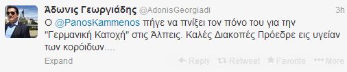 Η είδηση δεν πέρασε απαρατήρητη για τον Υπουργό Υγείας Αδωνι Γεωργιάδη, ο οποίος σχολίασε με αιχμηρό τρόπο τις ακριβές διακοπές του προέδρου των Ανεξάρτητων Ελλήνων, και έγραψε στο Twitter: