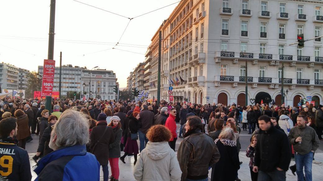Νέο μήνυμα συμπαράστασης στις ελληνικές προσπάθειες και κατά της λιτότητας αυτή την ώρα στο Σύνταγμα, στο Λευκό Πύργο και σε άλλες κεντρικές πλατείες της χώρας.