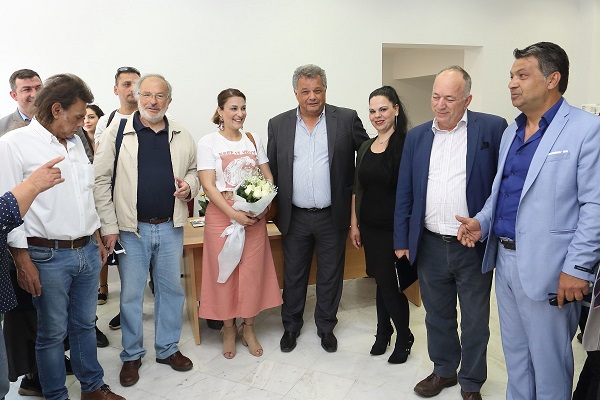 Ο κ Λυγερός με την υποψήφια της παράταξης του από την Κοινότητα των Ρομά στο Ηράκλειο, Αφροδίτη Σεραφειμοπούλου, κι άλλους υποψήφιους των Ενεργών Πολιτών καλωσόρισαν την κ Τζαμπάζη στο νέο εκλογικό κέντρο τους επί της οδού Αβέρωφ 12.
