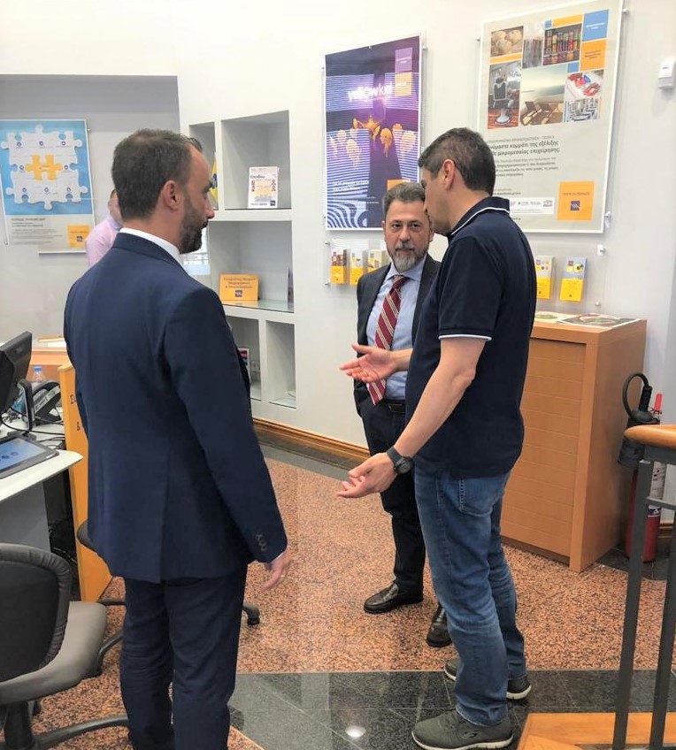 Επίσκεψη πραγματοποίησε σήμερα το πρωί, Τρίτη 2 Ιουλίου 2019, ο Γραμματέας ΠΕ της ΝΔ και υποψήφιος Βουλευτής Ηρακλείου, κ. Λευτέρης Αυγενάκης, στο κεντρικό κατάστημα της Τράπεζας Πειραιώς, όπου και συναντήθηκε με τον Περιφερειακό Διευθυντή της Τράπεζας, κ. Νίκο Τοουλιά, καθώς και εργαζομένους του καταστήματος.