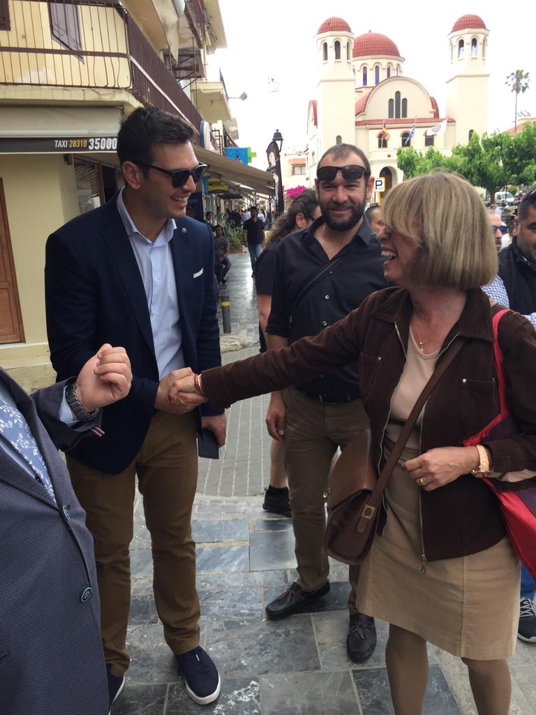 Νωρίτερα το πρωί παρευρέθηκε στην επέτειο μνήμης για την Μάχη της Κρήτης στα Μισίρια. Από το μεσημέρι και μετά, συνοδευόμενος πάντα από περιφερειακούς συμβούλους του Συνδυασμού «Η Κρήτη Μπροστά!» μετέβη στα χωριά Αγγελιανά, Άγιος Μάμας, Χουμέρι, Κάλυβος, Λιβάδια, Ζωνιανά και Ανώγεια, όπου συναντήθηκε και συζήτησε με πολλούς κατοίκους στην αγορά και τα καφενεία για τα προβλήματα που αντιμετωπίζουν και την επίλυσή τους.
