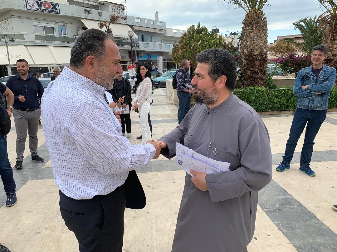 Ο επικεφαλής της Δημοτικής Κίνησης ΗΡΑΚΛΕΙΟ 3.7.5, μαζί με υποψηφίους συμβούλους, αντάλλαξε απόψεις με τους δημότες για τα προβλήματα της περιοχής. Επίσης, επισκέφθηκε τον Σύνδεσμο Φιλάθλων Ηροδότου και συνομίλησε με τους φίλους της ιστορικής ομάδας, οι οποίοι του προσέφεραν και μία φανέλα.