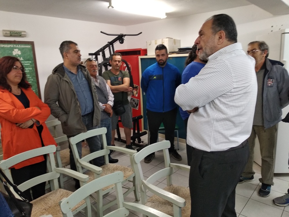Είχε την ευκαιρία να συνομιλήσει με πολίτες για τα ζητήματα που απασχολούν την περιοχή, ενώ ιδιαίτερη έμφαση δόθηκε στις αθλητικές υποδομές και στους χώρους αναψυχής. Ακολούθησε συνάντηση με τον Πρόεδρο του Π.Α.Ο Δειλινών κ. Βαγγέλη Κεφαλούκο, με μέλη του ΔΣ του Σωματείου αλλά και γονείς παιδιών που αθλούνται στις ακαδημίες.