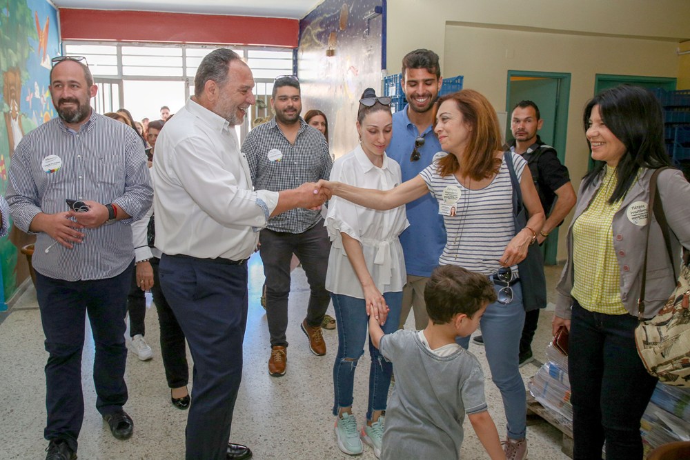 Το εκλογικό του δικαίωμα, στη γειτονιά του στα Καμίνια, άσκησε ο Γιάννης Κουράκης.