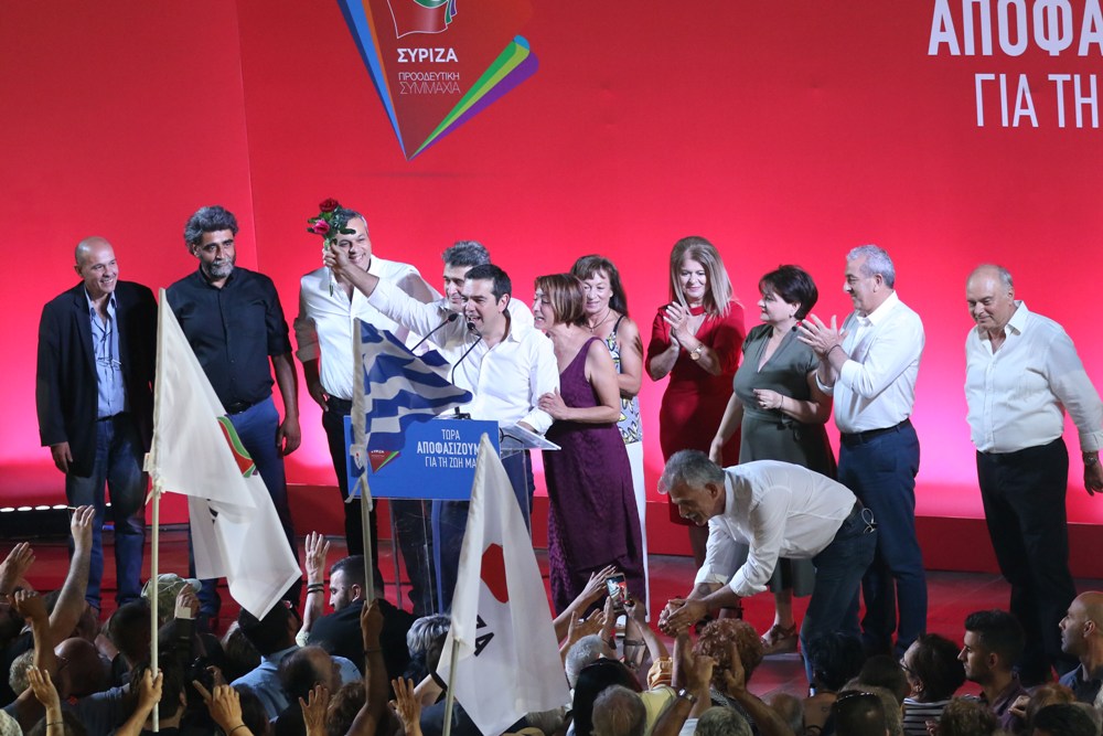 Στη διάρκεια της ομιλίας του ο πρωθυπουργός διερωτήθηκε αν μπορούν να δώσουν προοπτική «οι άνθρωποι που μας χρεοκόπησαν και μας λεηλάτησαν. Και που αργότερα αποπειράθηκαν να μας διχάσουν. Και να μας χωρίσουν σε προδότες και εθνικόφρονες. Αυτοί που λεηλάτησαν τα δημόσια ταμεία και μας οδήγησαν στη χρεοκοπία. Αυτοί που έστησαν πάνω στο ψέμα και την υποκρισία μια απίστευτη εθνική σκευωρία στο Μακεδονικό παίζοντας με τα εθνικά μας θέματα για να μας διχάσουν.
