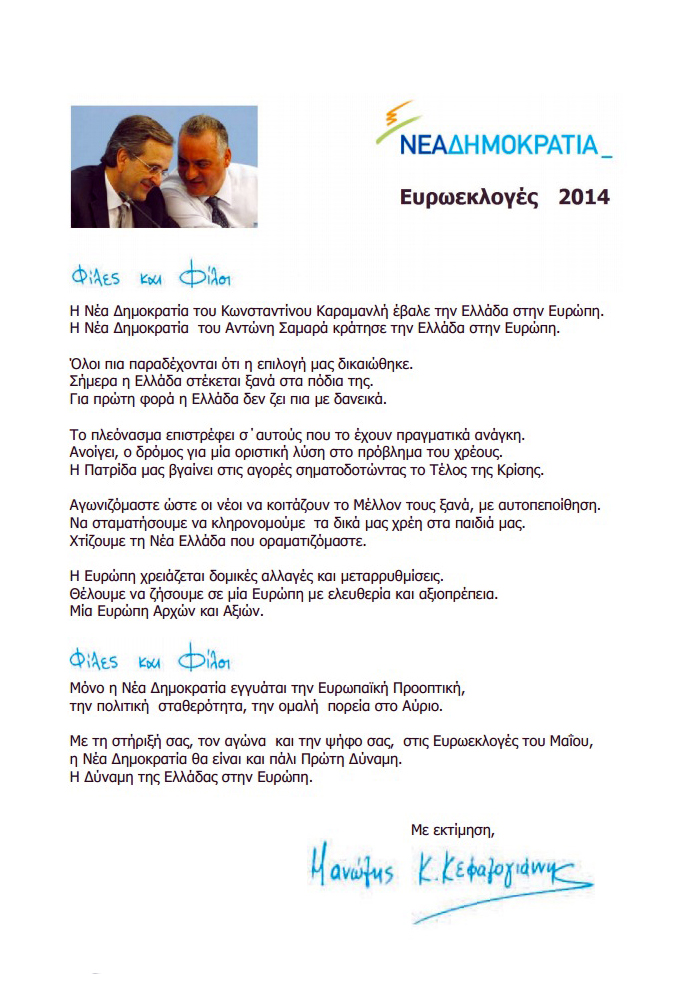 Ένα μήνυμα του Μανώλη Κεφαλογιάννη για τις επικείμενες Ευρωεκλογές