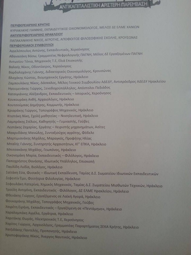Δείτε παρακάτω τα ονόματα των υποψήφιων με την Ανυπότακτη Κρήτη - Αντικαπιταλιστική Αριστερή Παρέμβαση.