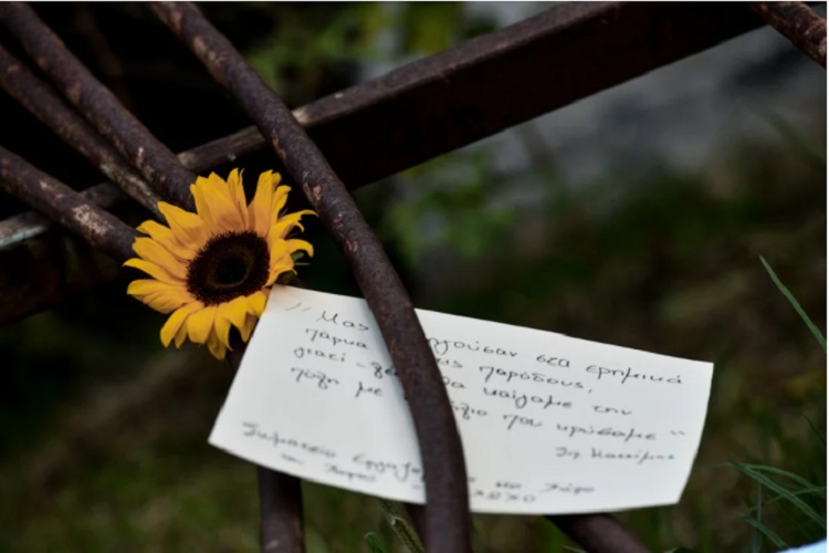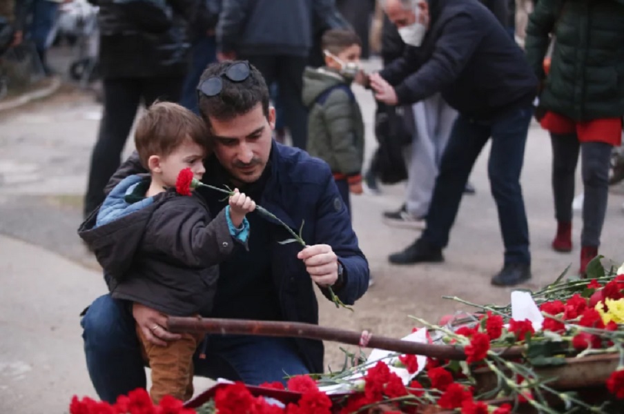 Ο κόσμος δεν σταματά να συρρέει με γαρύφαλα στα χέρια, τα οποία εναποθέτουν σε τμήμα της τσακισμένης πύλης του Πολυτεχενείου.