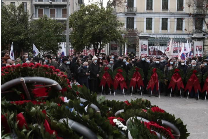 Από νωρίς το πρωί καταθέτουν λουλούδια στο Πολυτεχνείο φοιτητές, πολίτες και πολιτικοί για την 48η επέτειο από την εξέγερση των φοιτητών.
