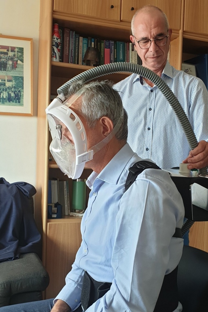 Η συσκευή αποτελείται από μια ολοπρόσωπη μάσκα (τύπου snorkeling), με φιλικό προς το δέρμα υλικό ιατρικής σιλικόνης. Η ποιότητα και καθαρότητα του εισπνεόμενου και εκπνεόμενου αέρα ελέγχεται από κύκλωμα φιλτραρίσματος ενεργού άνθρακα και αποστείρωσης μέσω κατάλληλης υπεριώδους ακτινοβολίας. Επίσης ρυθμίζεται η ποσότητα του εισπνεόμενου αέρα μέσω ελέγχου της ταχύτητας ροής. Η αποστείρωση είναι διπλή μέσω ανεξαρτήτων οδεύσεων, τόσο για τον εισπνεόμενο αέρα, όσο και για τον εκπνεόμενο.