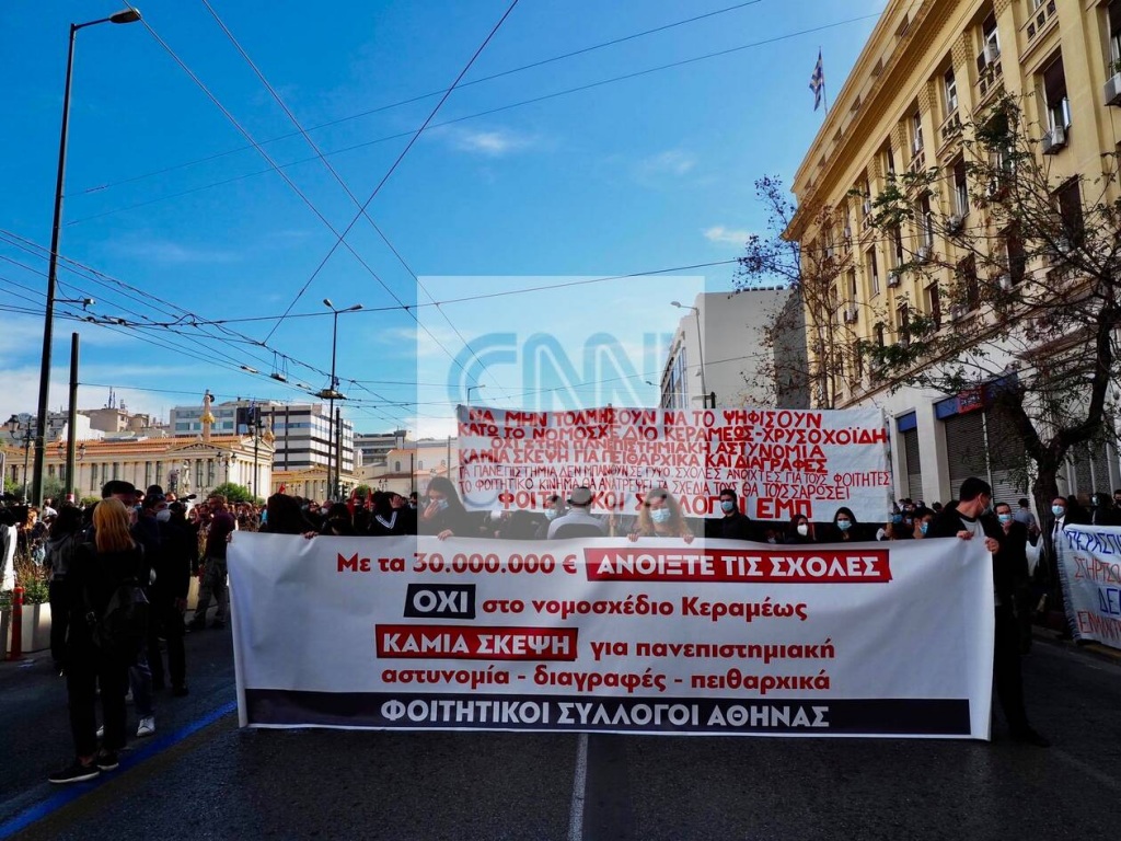 Σε εξέλιξη βρίσκεται το πανεκπαιδευτικό συλλαλητήριο κατά του νομοσχεδίου του υπουργείου Παιδείας για την Τριτοβάθμια Εκπαίδευση στο κέντρο της Αθήνας.