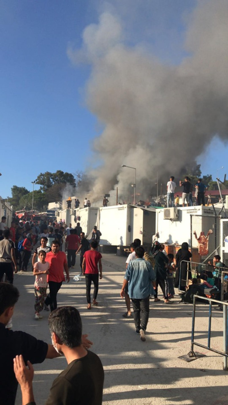 Μεγάλη φωτιά ξέσπασε στο Κέντρο Υποδοχής στη Μόρια Λέσβου, το απόγευμα της Κυριακής.