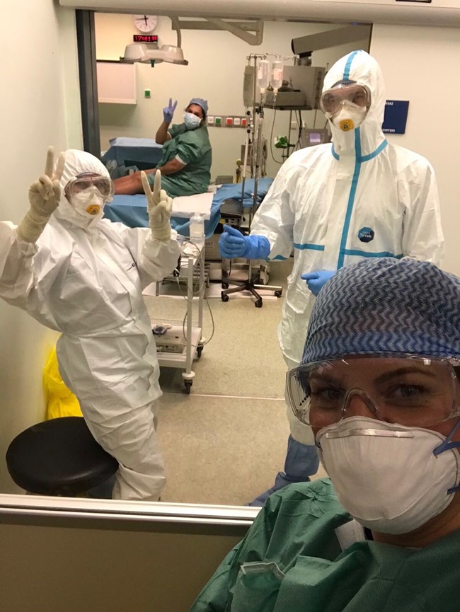 Στην καισαρική τομή συμμετείχε ομάδα γιατρών (γυναικολόγοι, αναισθησιολόγος, νεογνολόγος, προσωπικό από την επιτροπή λοιμώξεων του νοσοκομείου και του χειρουργείου). Η μητέρα και το νεογνό είναι σε άριστη κατάσταση. Η μητέρα μεταφέρθηκε σε θάλαμο βραχείας νοσηλείας με αρνητική πίεση και το νεογνό μεταφέρθηκε στη μονάδα προώρων νεογνών για παρακολούθηση.
