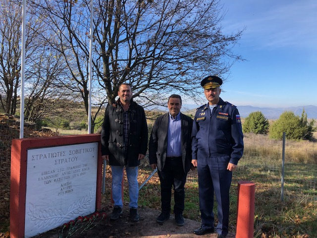 Το χώμα από τις πλαγιές του Βερμίου στο Μεσόβουνο Κοζάνης, στο σημείο που έπεσαν μαχόμενοι εναντίον των Ναζί τον Απρίλιο του 1944 τέσσερις Σοβιετικοί στρατιώτες, παρέλαβε στρατιωτική αντιπροσωπεία με επικεφαλής τον στρατιωτικό ακόλουθο της Ρωσικής πρεσβείας στην Αθήνα, υποστράτηγο Α. Πριχόντικο.