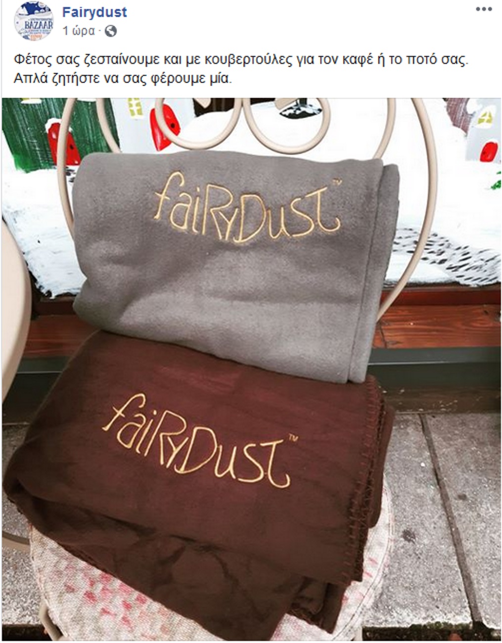 “Φέτος σας ζεσταίνουμε και με κουβερτούλες για τον καφέ ή το ποτό σας. Απλά ζητήστε να σας φέρουμε μία” διαβάζουμε στη σχετική ανάρτηση.