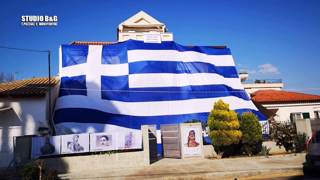 Με μία ελληνική σημαία μεγέθους 140 τ.μ κάλυψαν μία διώροφη κατοικία οι "Φίλοι της Σημαίας" Νέας Κίου στην Αργολίδα, σε μα συμβολική κίνηση ενόψει της επετείου της 25ης Μαρτίου.