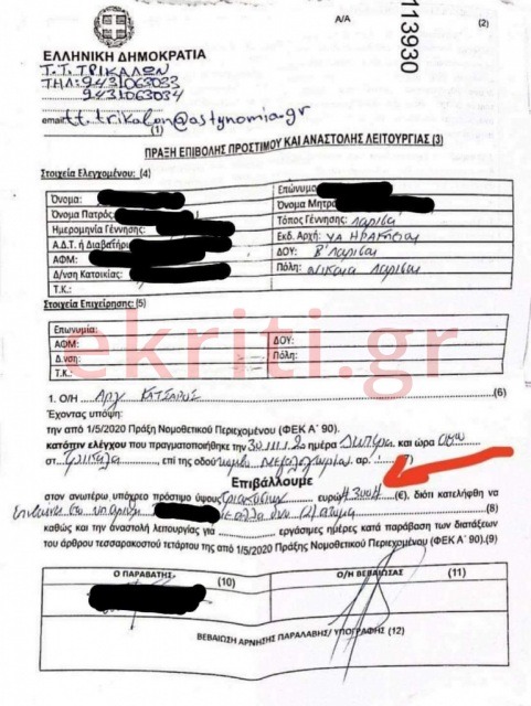 Πρόστιμα ύψους 300 ευρώ έκαστος καλούνται να πληρώσουν τρεις εκπαιδευτικοί από τη Λάρισα οι οποίοι υπηρετούν στο Κέντρο Εκπαιδευτικής και Συμβουλευτικής Υποστήριξης (ΚΕΣΥ) Τρικάλων!
