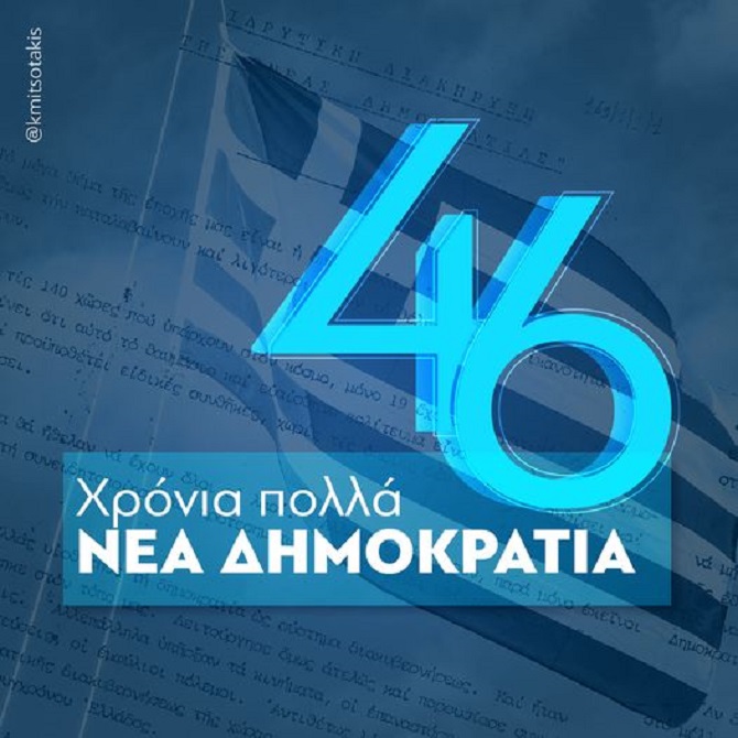 Ανάρτηση για τα 46 χρόνια από την ίδρυση της ΝΔ, έκανε ο πρωθυπουργός και πρόεδρος του κόμματος, Κυριάκος Μητσοτάκης.