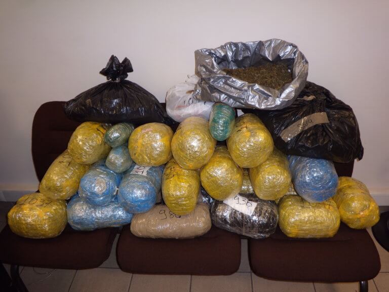 Σε έλεγχο που έγινε στο όχημα εντοπίστηκαν και κατασχέθηκαν 3 σάκοι με 50 δέματα ινδικής κάνναβης συνολικού βάρους 68 κιλών και 800 γραμμαρίων. Οι δύο νεαροί Αλβανοί που συνελήφθησαν φέρεται να είναι μέλη εγκληματικής ομάδας, που ασχολείται με την εισαγωγή στη χώρα, μεταφορά και διακίνηση ναρκωτικών ουσιών, μέσω της ελληνοαλβανικής μεθορίου και την εν συνεχεία διακίνηση σε περιοχές της Βόρειας Ελλάδας.