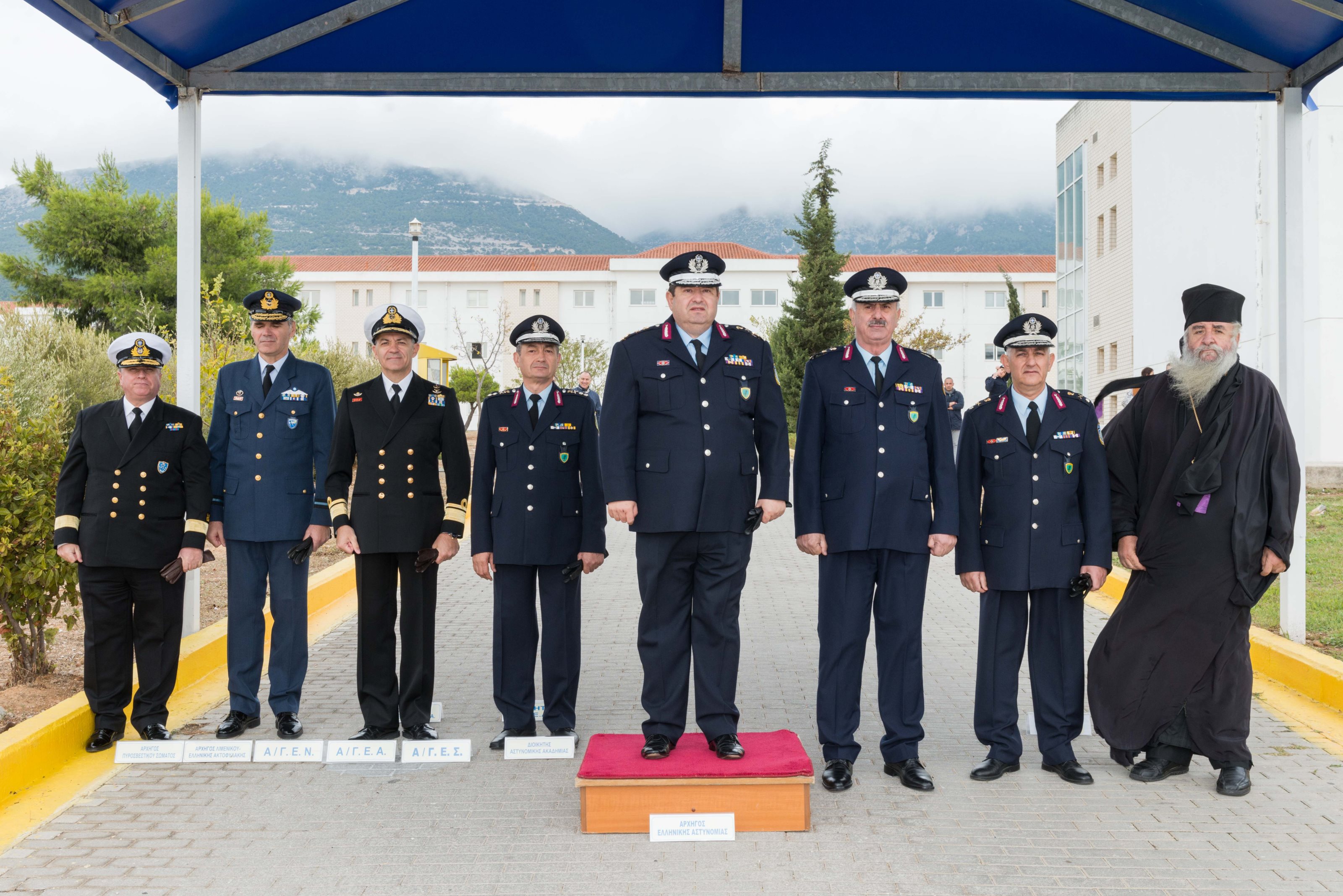 Την τελετή τίμησαν με την παρουσία τους ο Υποναύαρχος Δημήτριος-Ελευθέριος Κατάρας, ως εκπρόσωπος του Αρχηγού Γενικού Επιτελείου Ναυτικού, ο Αρχιπλοίαρχος Δρόσος Ρεΐζης, ως εκπρόσωπος του Αρχηγού του Λιμενικού Σώματος - Ελληνικής Ακτοφυλακής, ο Προϊστάμενος Επιτελείου του Αρχηγείου Ελληνικής Αστυνομίας, Αντιστράτηγος Κωνσταντίνος Λαγουδάκης, ο Διοικητής της Αστυνομικής Ακαδημίας, Υποστράτηγος Παναγιώτης Κορδολαίμης, ο Διευθυντής της Διεύθυνσης Ασφάλειας Αττικής, Υποστράτηγος Πέτρος Τζεφέρης και ο Προϊστάμενος του Κλάδου Διοικητικής Υποστήριξης και Ανθρωπίνου Δυναμικού, Ταξίαρχος Μιχαήλ Λαδομένος.