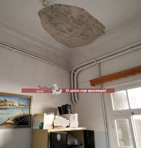 Ένα μεγάλο κομμάτι σοβά από το ταβάνι, έπεσε πάνω στα γραφεία του Αστυνομικού Τμήματος Μεσολογγίου και παραλίγο να τραυματίσει αστυνομικούς και πολίτες που βρίσκονταν εκείνη την ώρα στο χώρο.