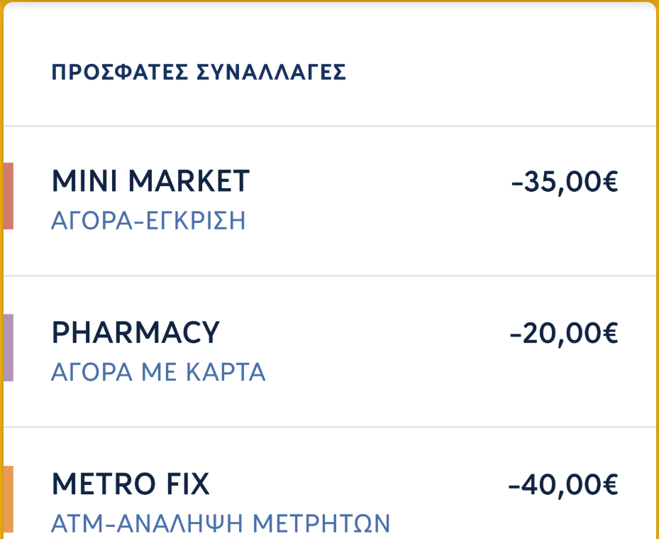 Όλες τις πρόσφατες συναλλαγές του συγκεντρωμένες σε ένα σημείο, από όλους τους καταθετικούς λογαριασμούς και τις κάρτες του