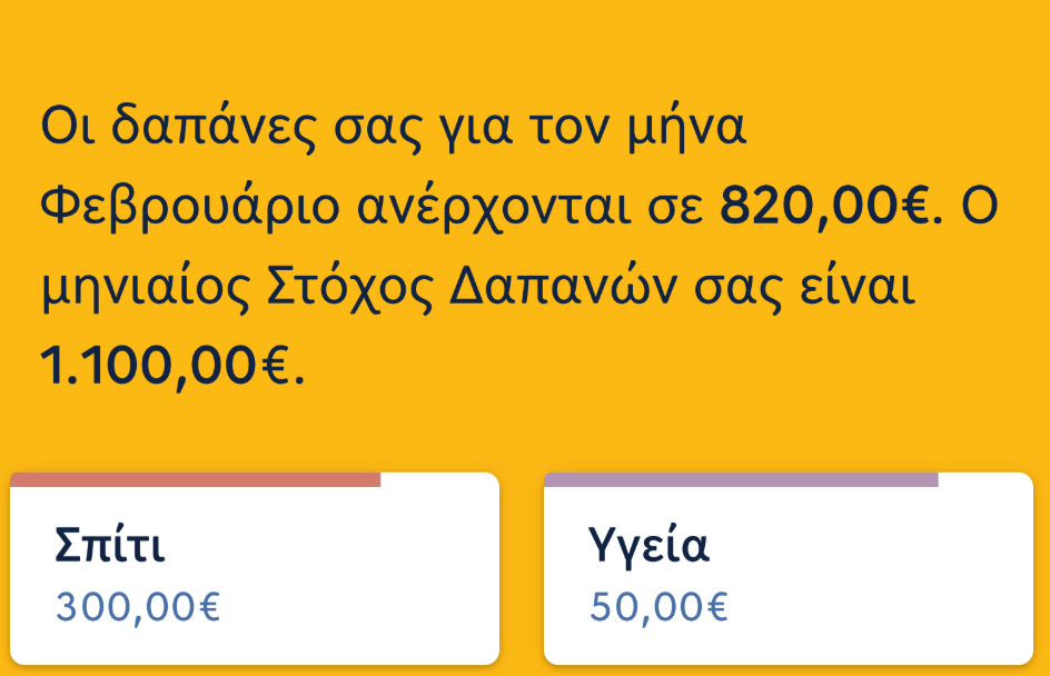 Δυνατότητα δημιουργίας προσωπικών στόχων αποταμίευσης, και παρακολούθησης της πορείας τους