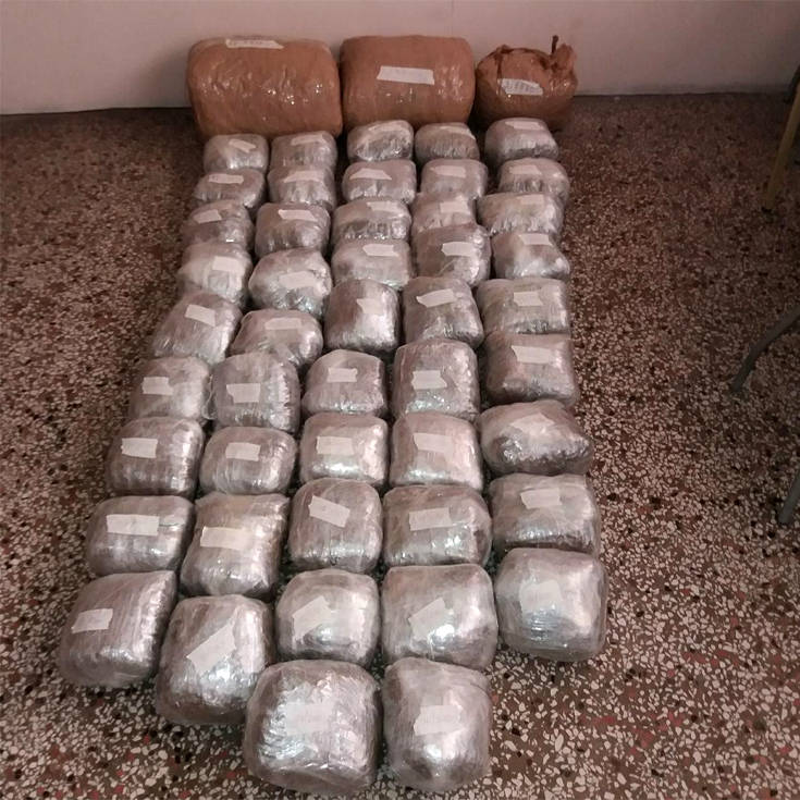 Οι αστυνομικοί ακινητοποίησαν το αυτοκίνητο που οδηγούσε ο 44χρονος και σε έλεγχο βρέθηκαν και κατασχέθηκαν πέντε ταξιδιωτικοί σάκοι που περιείχαν συνολικά πενήντα συσκευασίες με ακατέργαστη κάνναβη, συνολικού βάρους εβδομήντα δύο κιλών.
