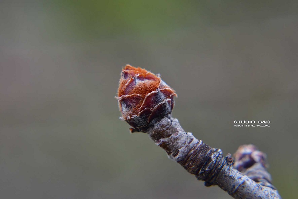 Μπουμπούκι που ανθίζει σε κλαδί δένδρου έκανε την εμφάνιση του σε τοποθεσία στο Ναύπλιο την Παρασκευή 6 Δεκεμβρίου 2019.